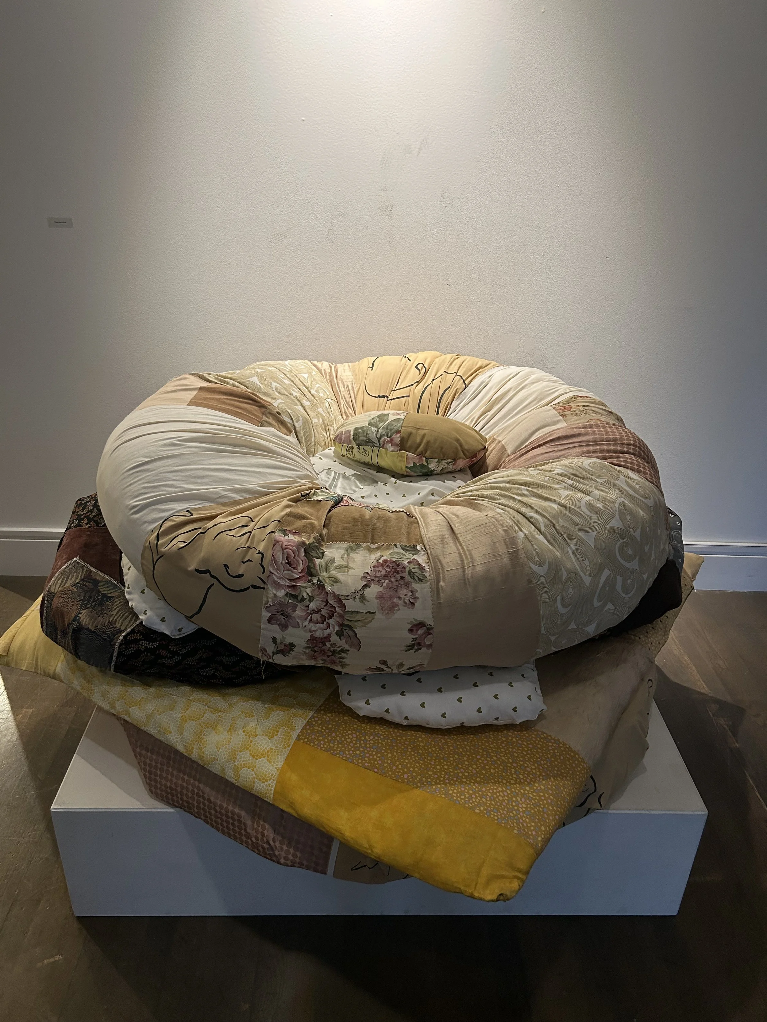 Breakfast Is Served 2023, 48”L 48”W 36”H, Recycled fabric, mixed media.